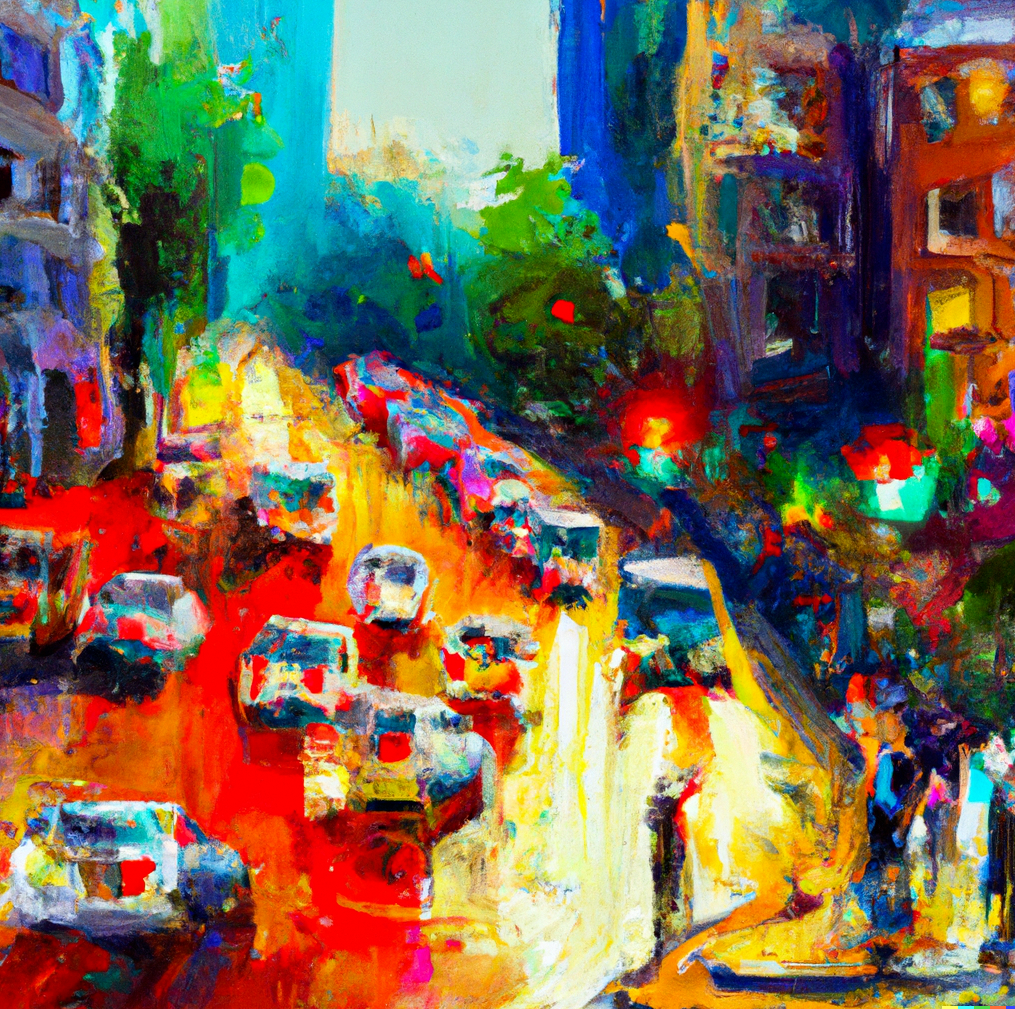 Canvas print of "City Street" Printed On A Canvas Ready To Hang Only available here, you will not find this painting anywhere else.