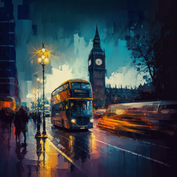 Looking for a stunning piece of art that captures the essence of London's most iconic landmarks? Look no further than our exclusive canvas print of an oil painting featuring Big Ben and a classic London bus.